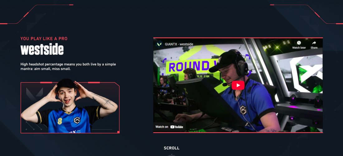 Ensuite, le rapport se concentre sur votre année écoulée, mettant en avant vos progrès et tendances. La section suivante concerne votre groupe de jeu habituel, avec des insights spécifiques à cette communauté. Enfin, vous accédez à vos statistiques personnelles, accompagnées d’une comparaison amusante avec un joueur professionnel partageant souvent votre agent favori.