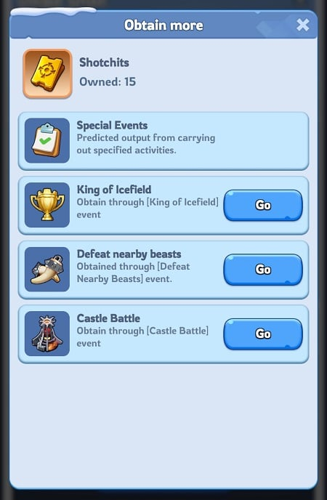 Currently, our knowledge indicates that only the battles at King of Icefield, the confrontation with the nearby beasts, and the clash at Sunfire Castle are confirmed to yield shotchits.